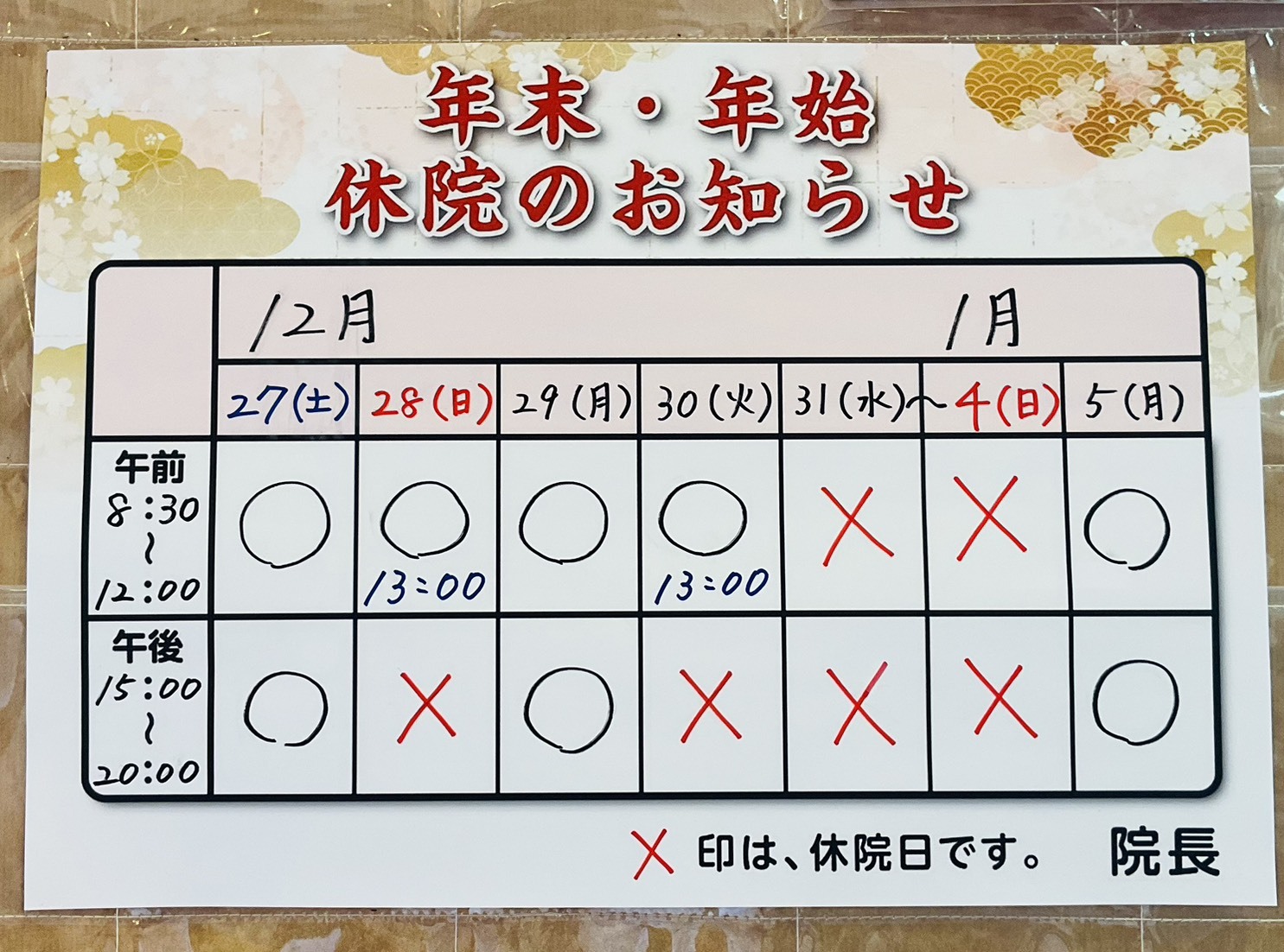 【年末年始・休診日のお知らせ】