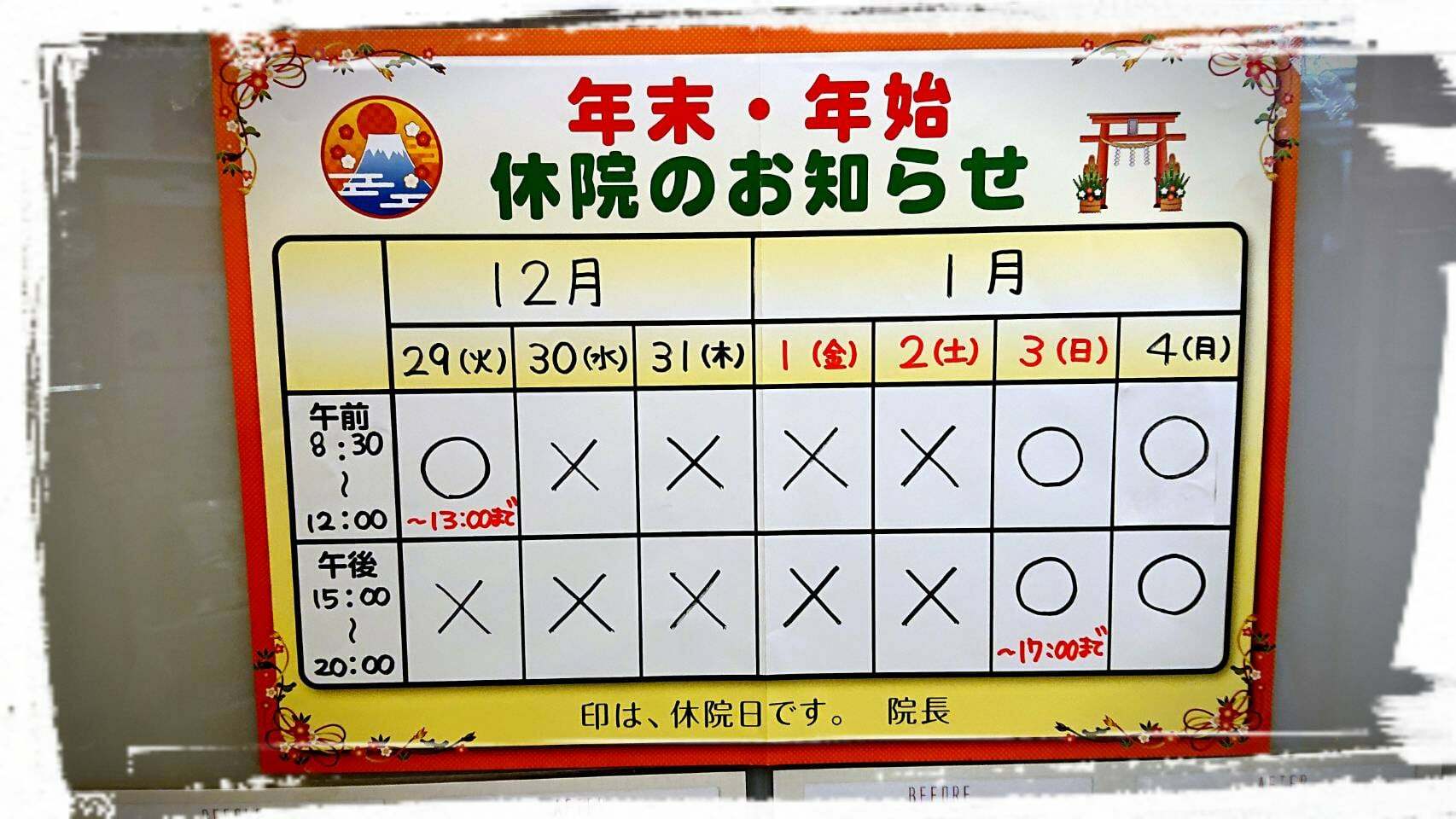 - 年末年始のお休みと院内工事のお知らせ